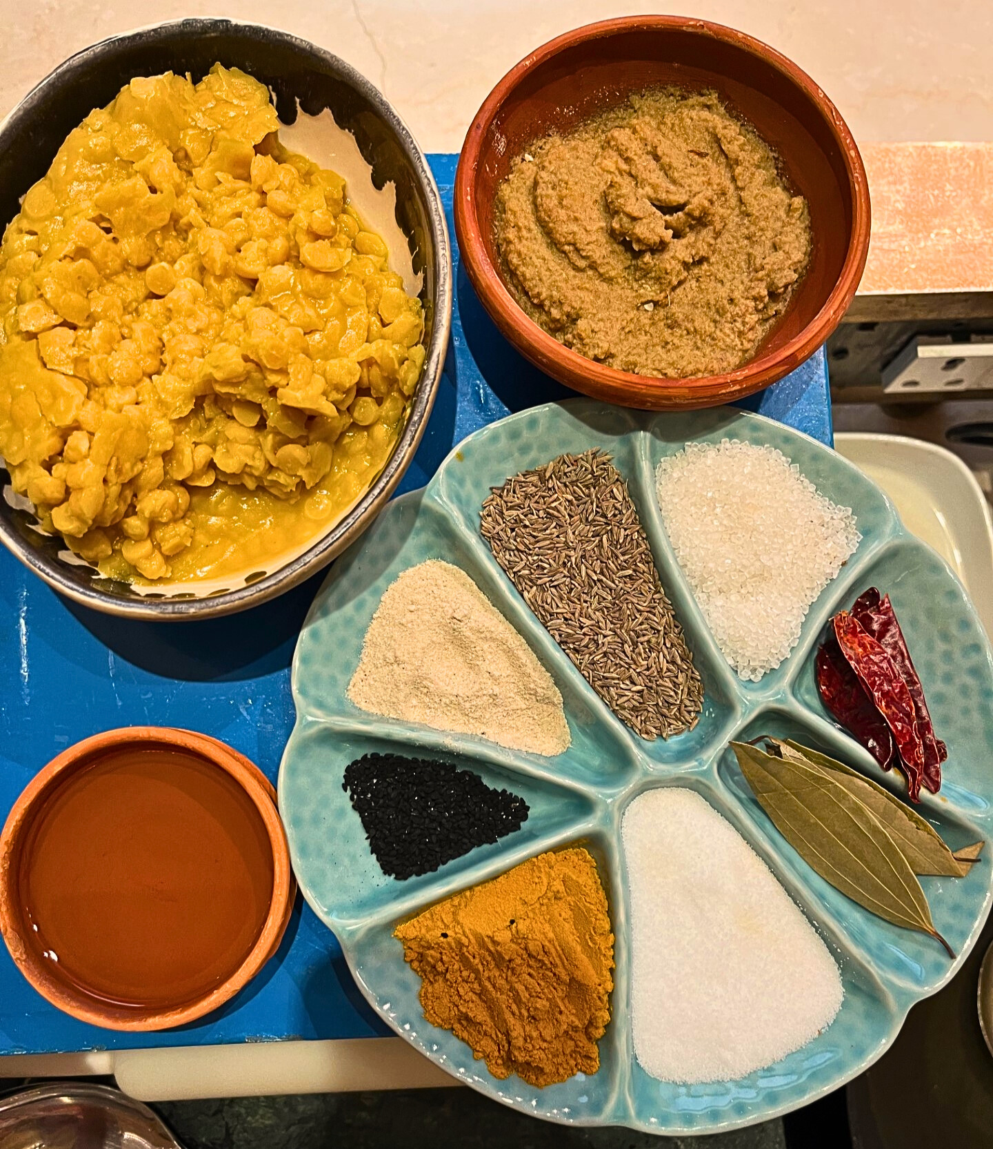 Some other ingredients which typify Bengali cuisine include mustard in various forms, including mustard oil – the pungent, almost umami quality of mustard oil being one of the defining features – and spice mixes such as panch phoron (a five-spice mix that includes radhuni, a type of celery seed that is only grown here).